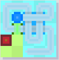 Unsurprisingly, ice is also one of the most versatile puzzle elements. It works exactly as you'd expect - and like you've probably seen in many puzzle games. If you move through it in a direction, you won't stop until you hit something that blocks your way, or if there's an empty tile ahead. That brings a lot of possibilities: together with crossroads, the player can cross large chains in a single move. By themselves, might require the player to pre-block their path before sliding through. They can also be an obstacle when they force you somewhere you don't want to go.